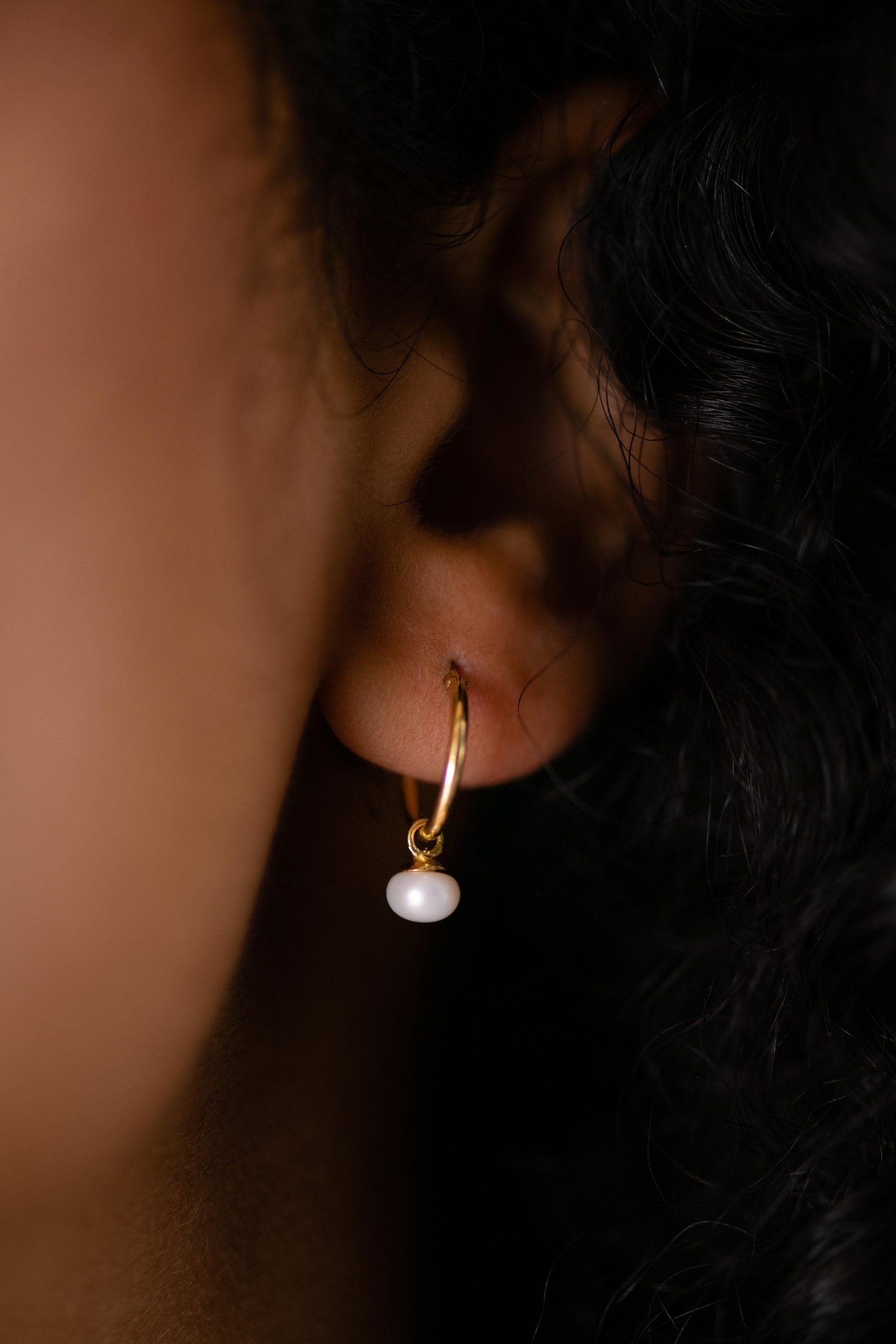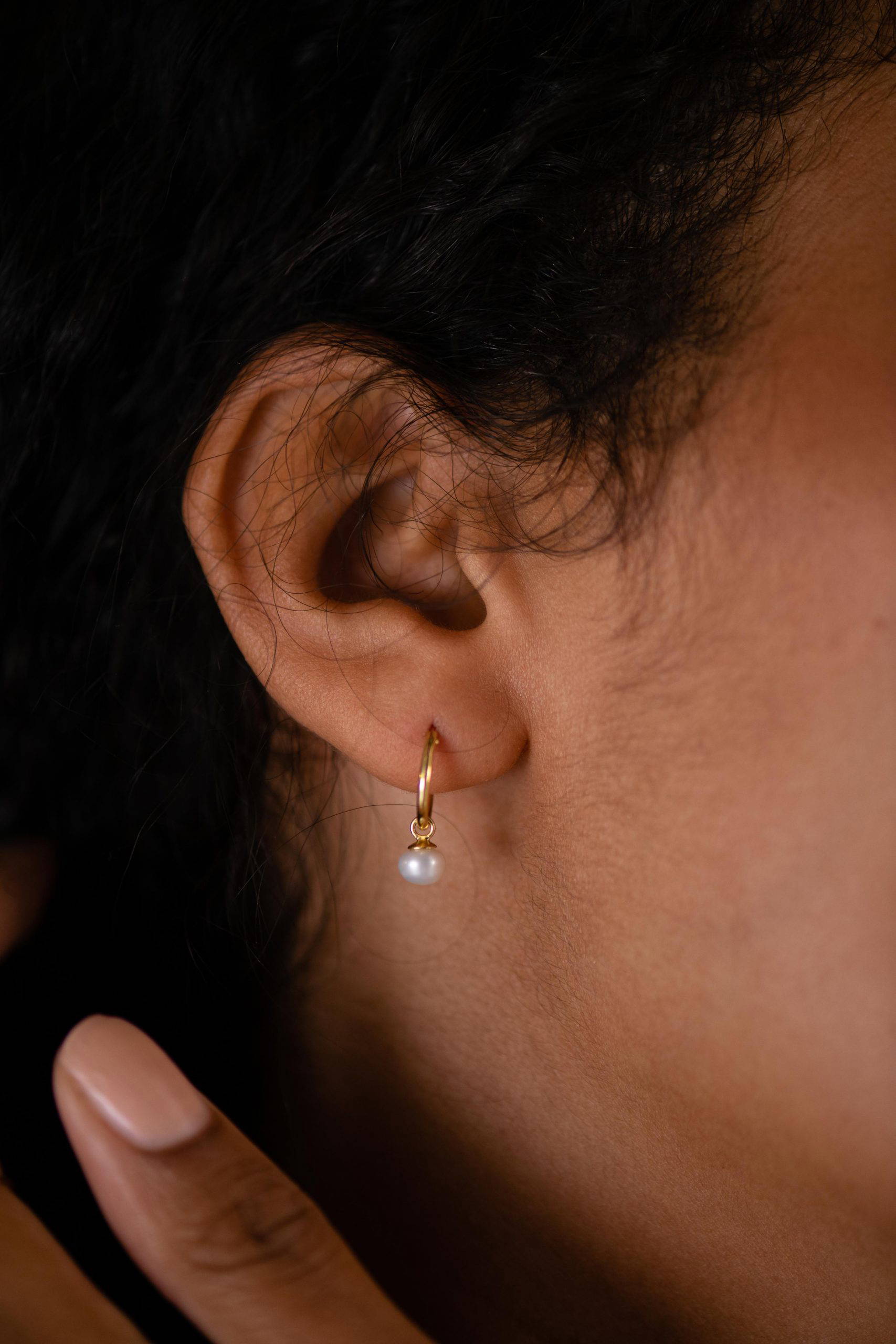GOLD PEARL DROP HOOP