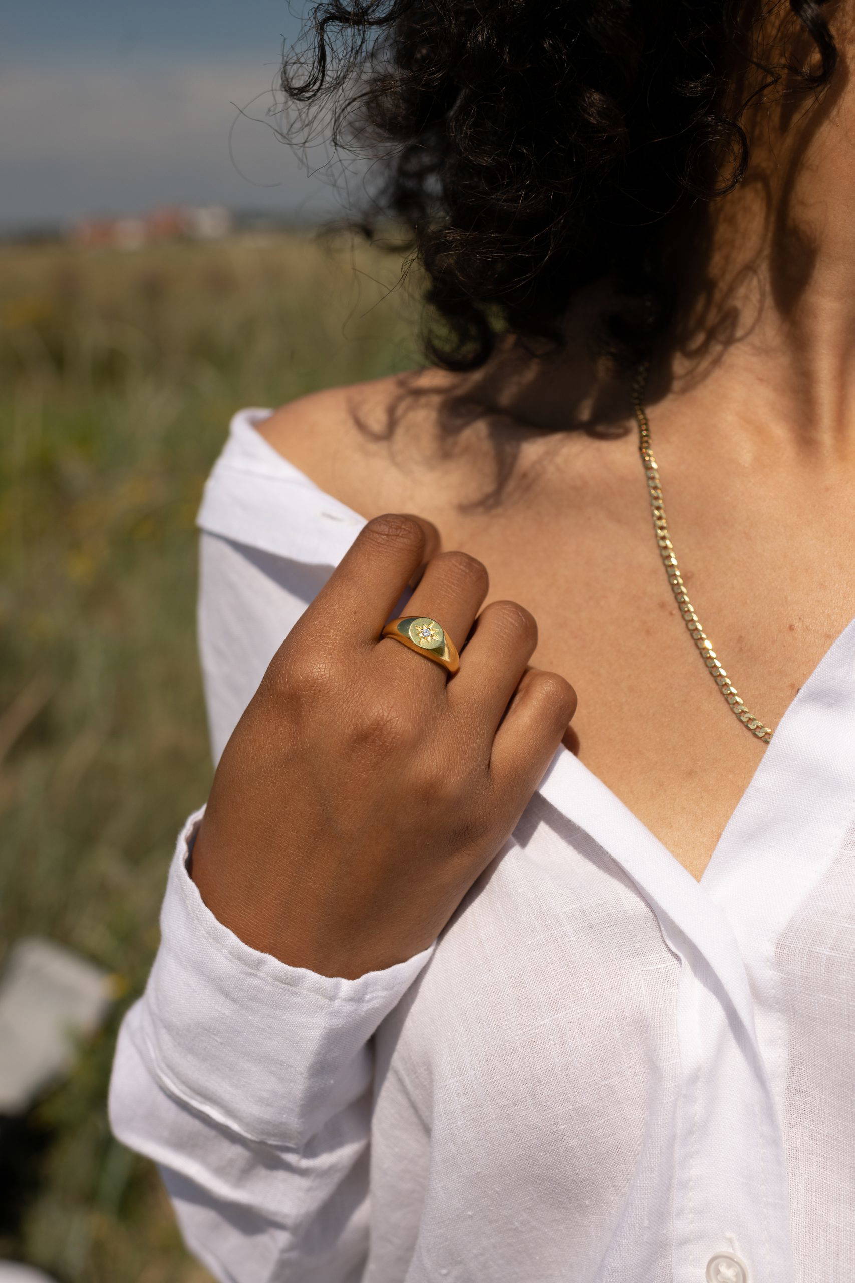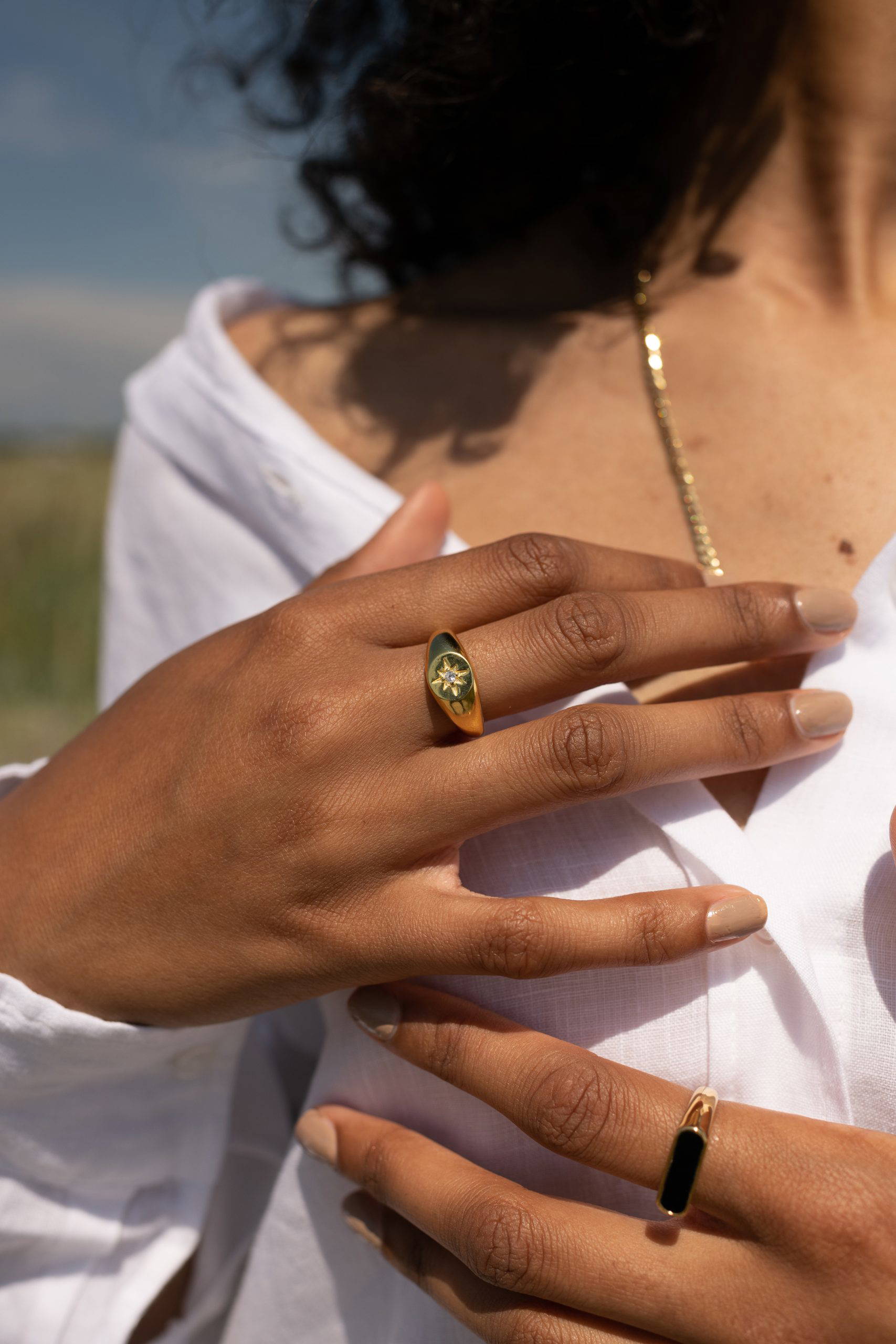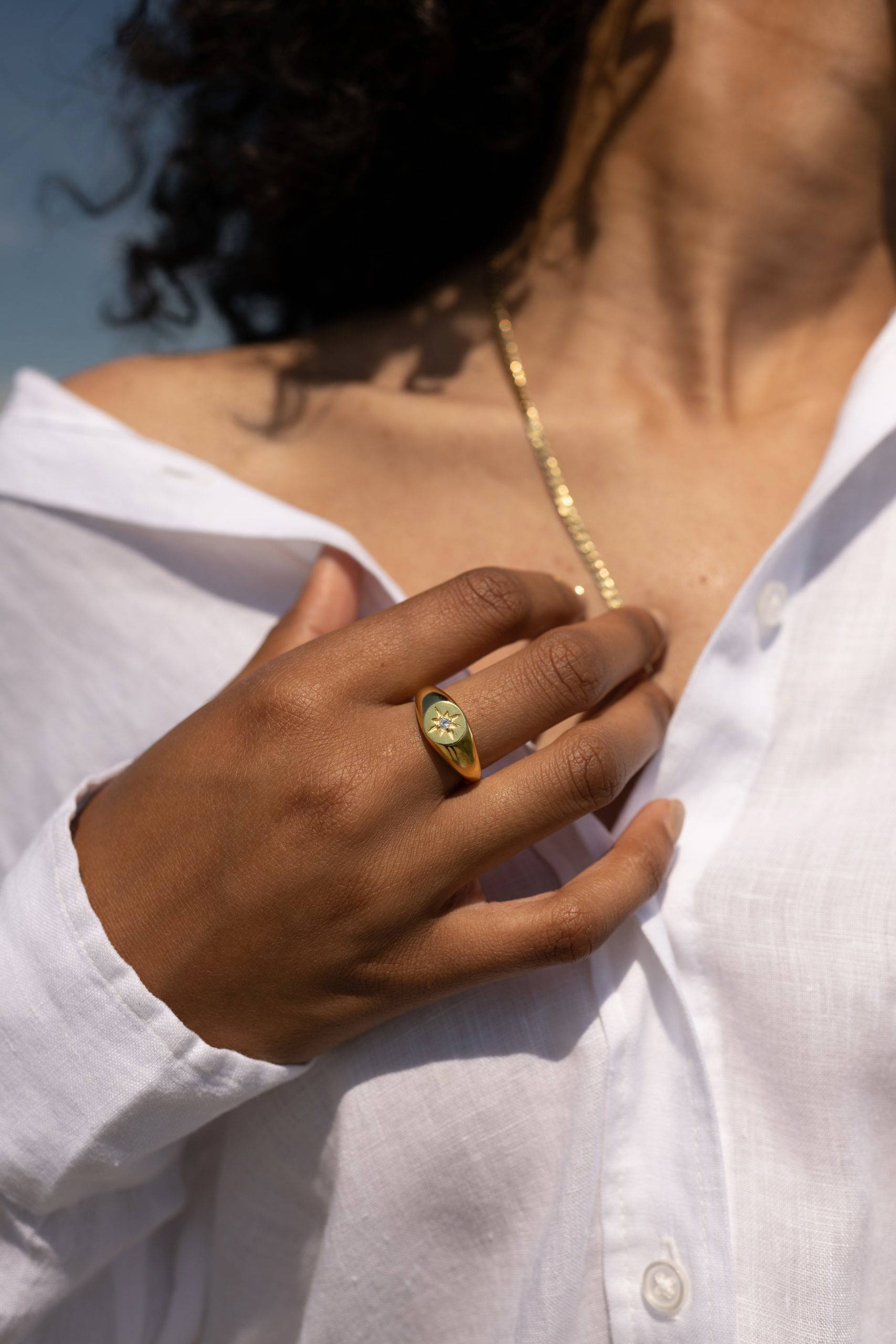 GOLD SIGNET CZ BEAUTIFUL RING