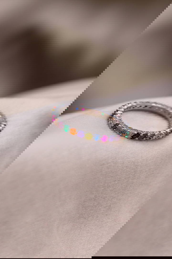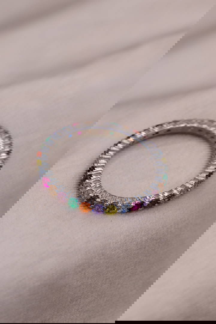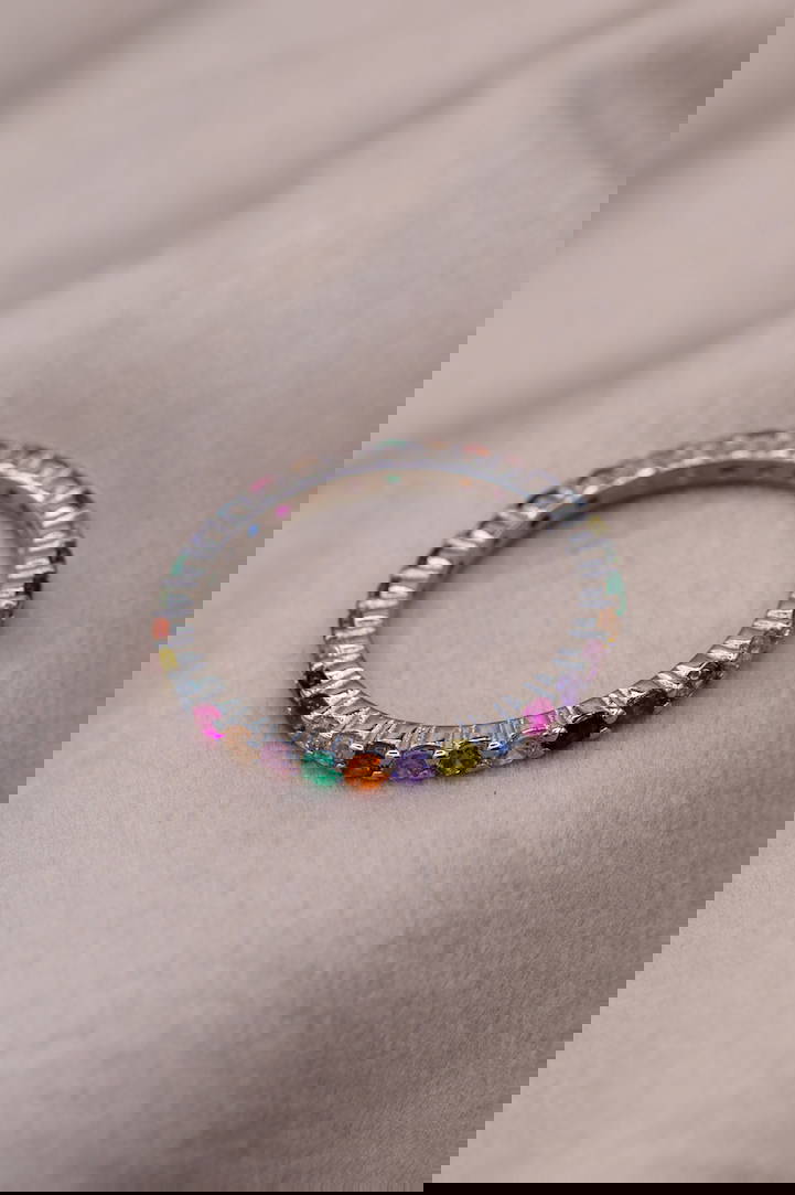 Sterling Silver Colourful CZ Beautiful Gem Band Ring Gems are all colourful Hallmarked at Dublin Castle to ensure high quality.