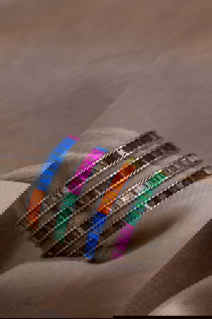 Sterling Silver Colourful CZ Beautiful Gem Band Ring Gems are all colourful Hallmarked at Dublin Castle to ensure high quality.