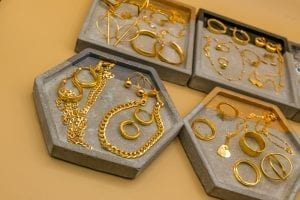 • CONCRETE HEXAGON DISH – GOLD